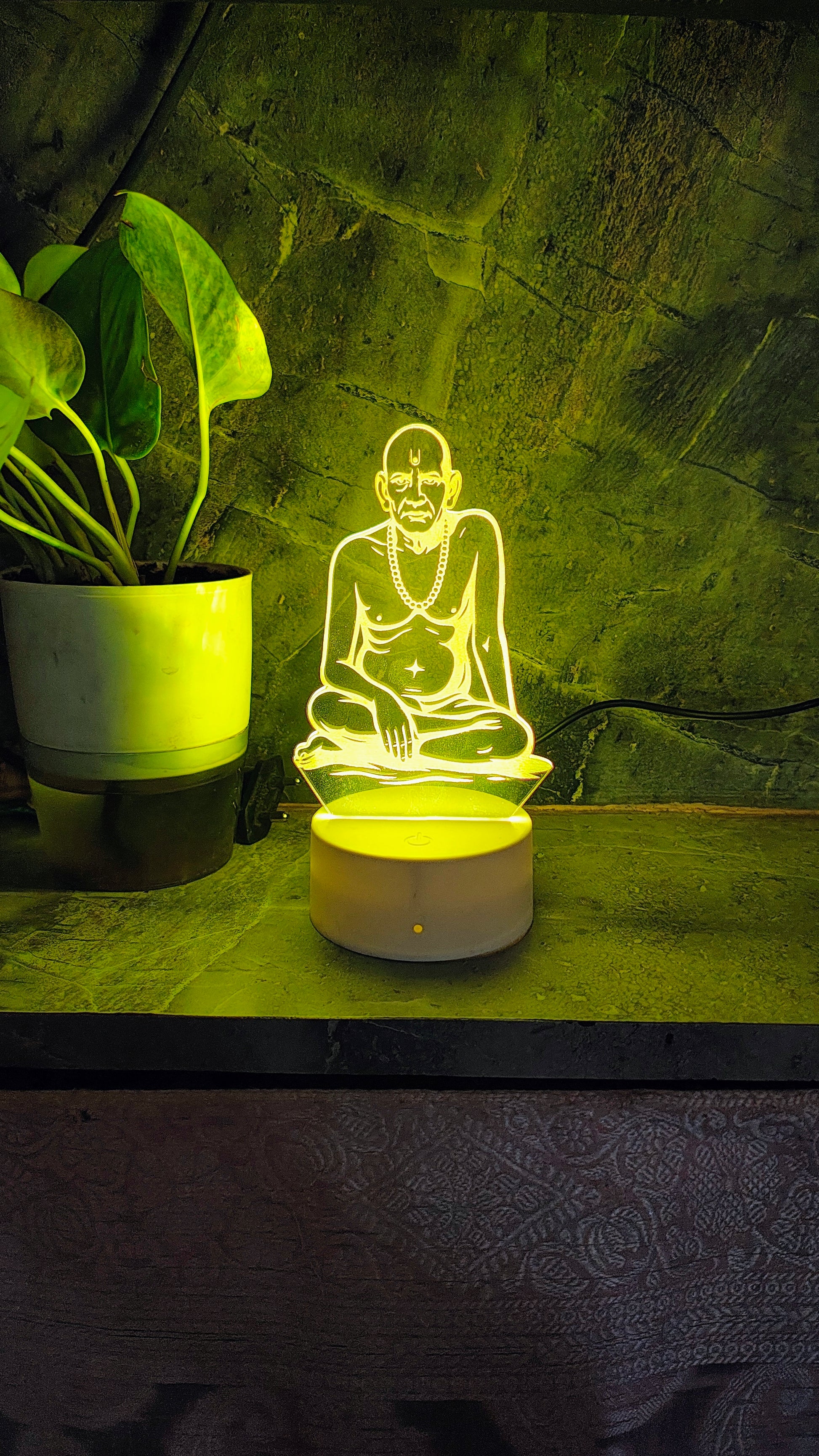 Bring divine blessings to your space with the powerful presence of Swami Samarth Maharaj in a glowing 3D illusion lamp. Crafted with intricate laser lines and a 7-color LED base, this lamp is perfect for spiritual seekers, homes, and gifting.