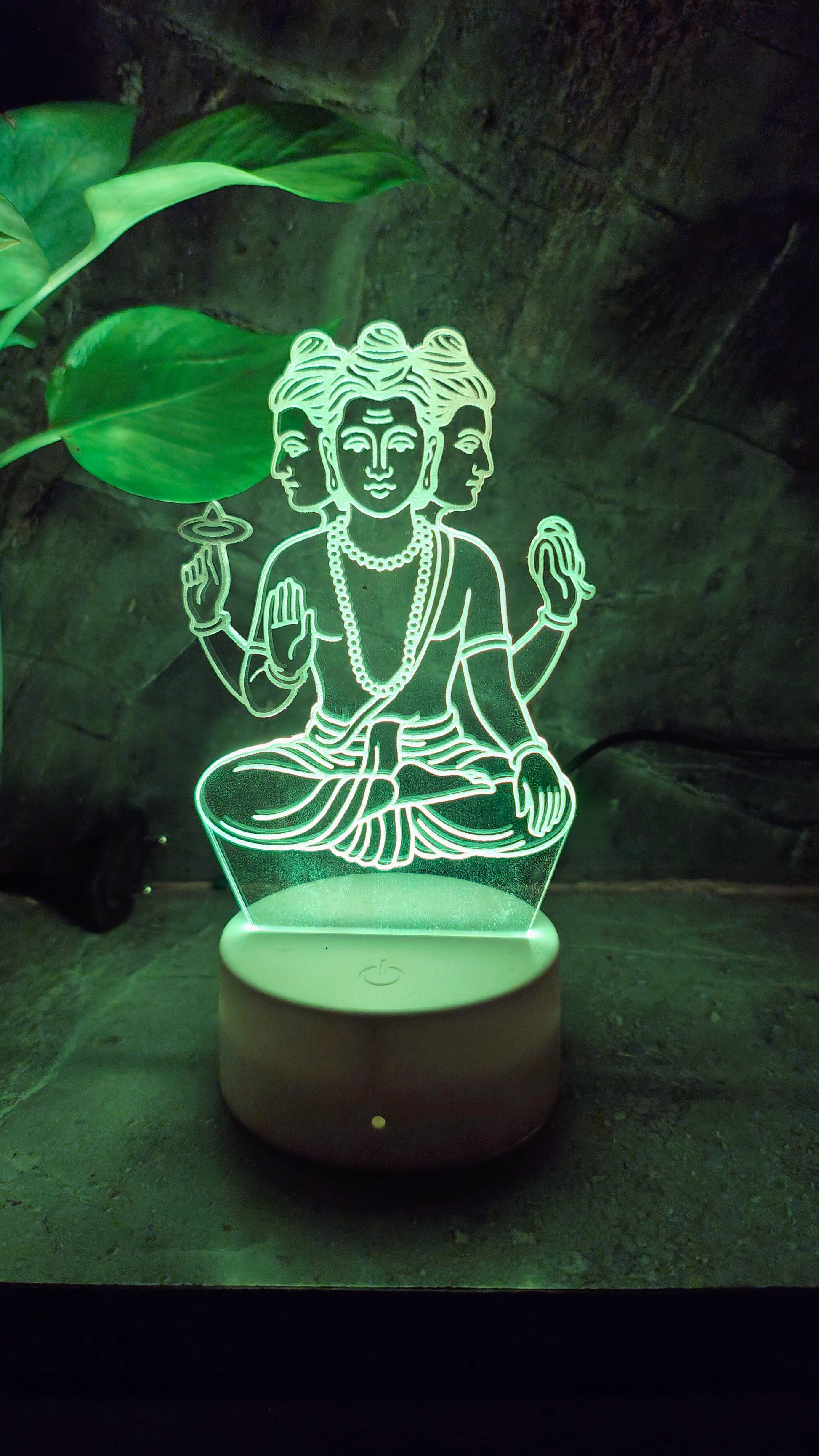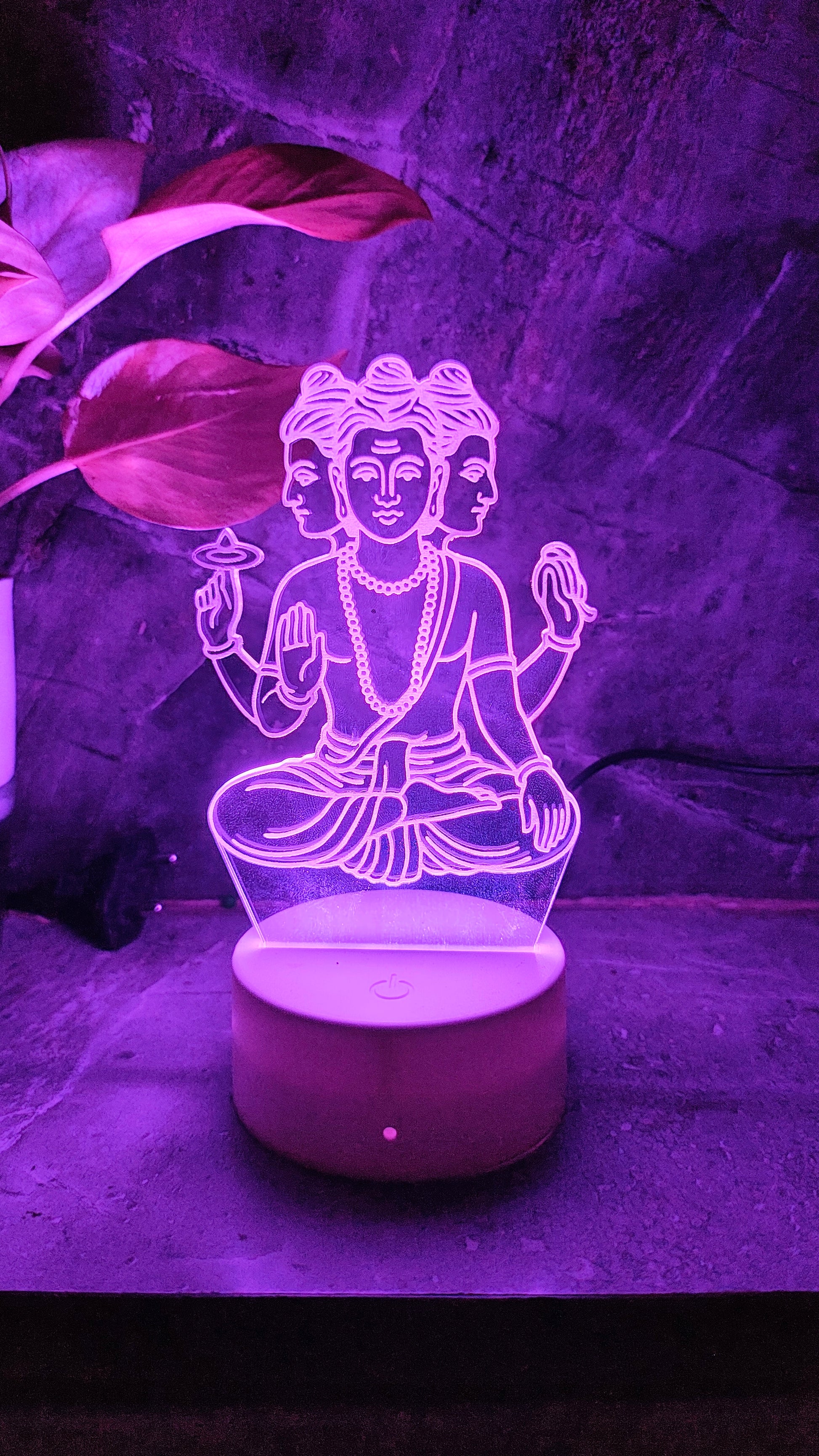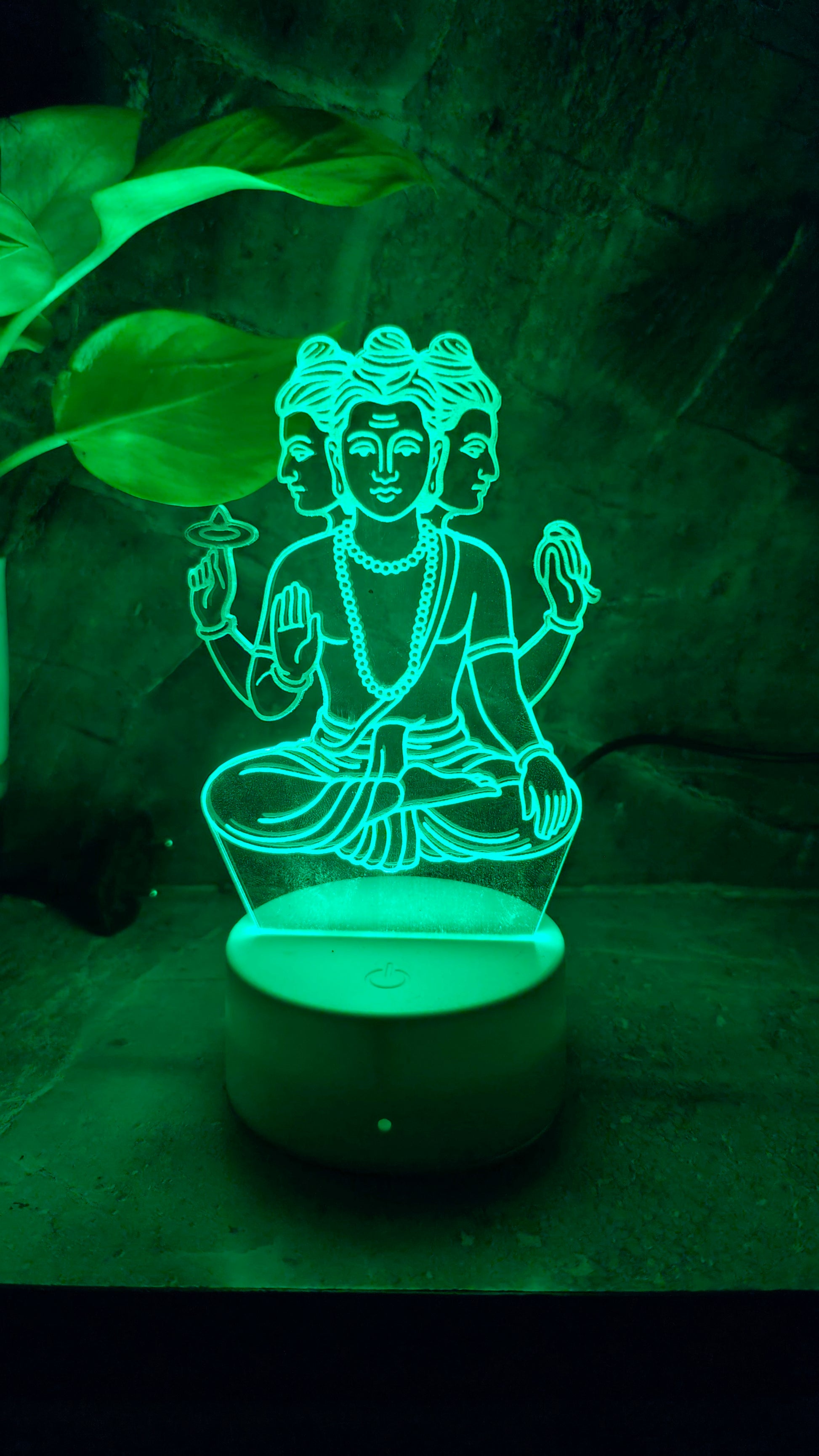 Dattatreya Maharaj 3D LED Illusion Lamp – Divine Glow | Premium Box | 7-Color Base
