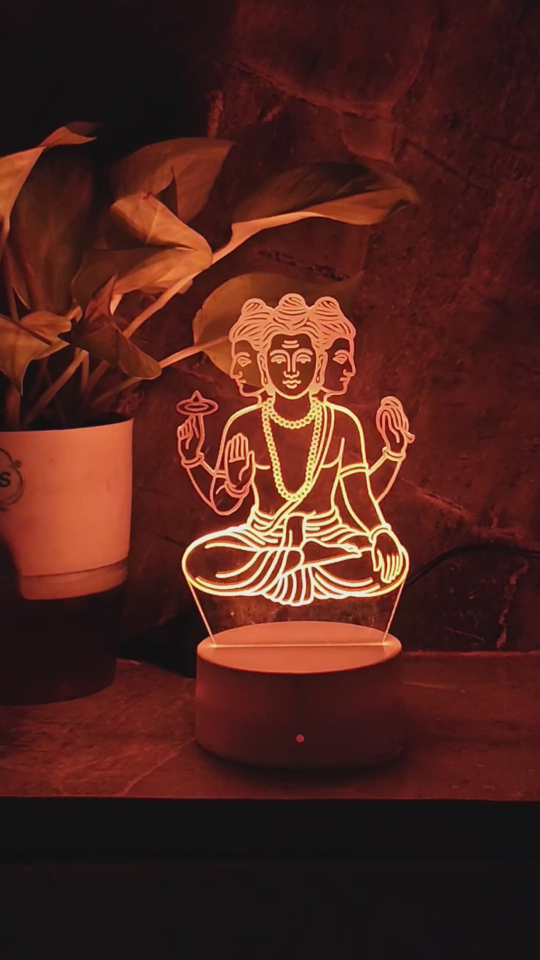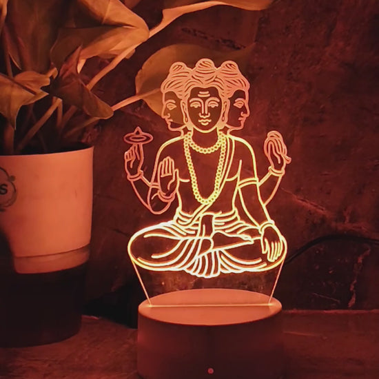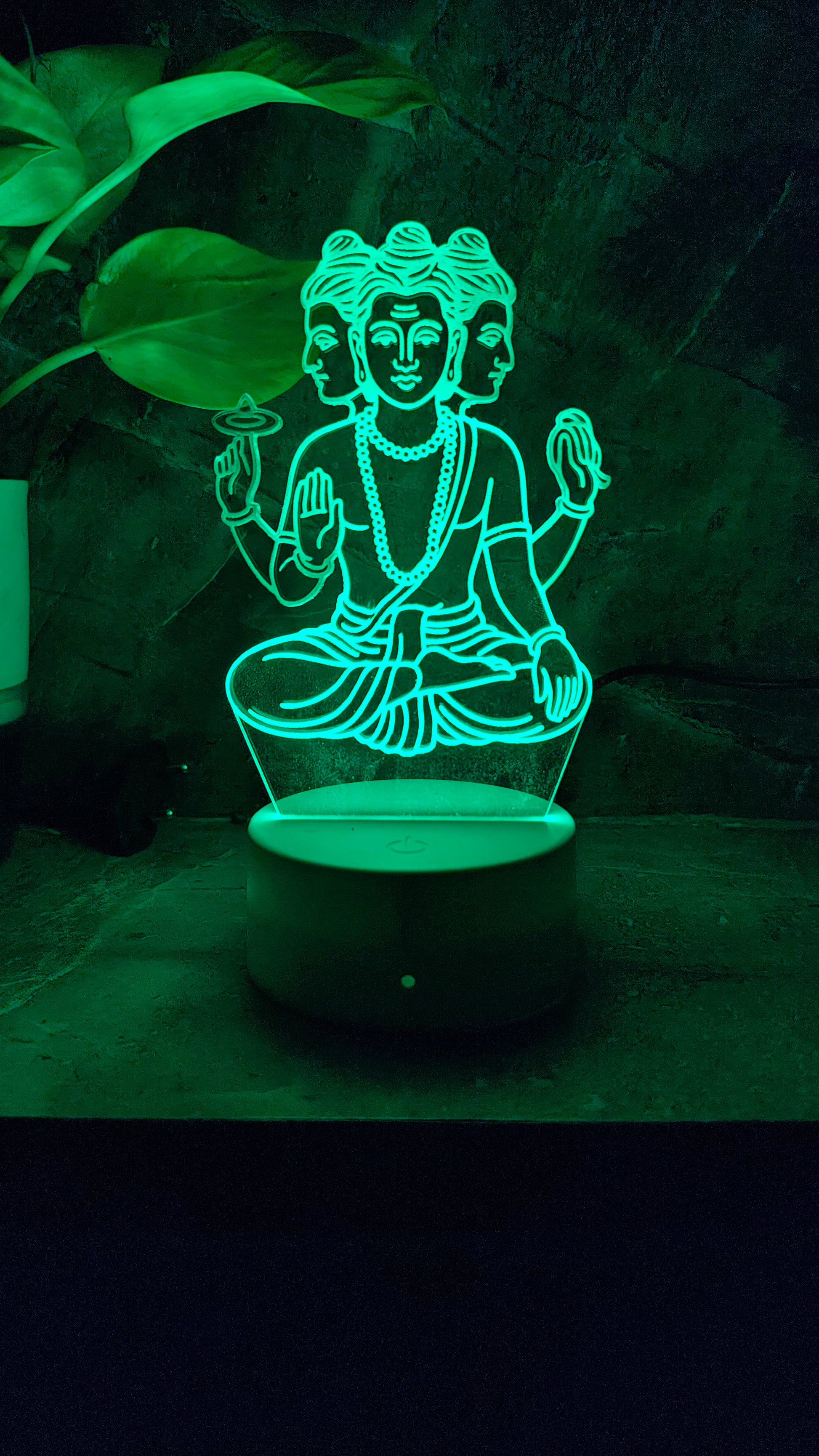 Dattatreya Maharaj 3D LED Illusion Lamp – Divine Glow | Premium Box | 7-Color Base