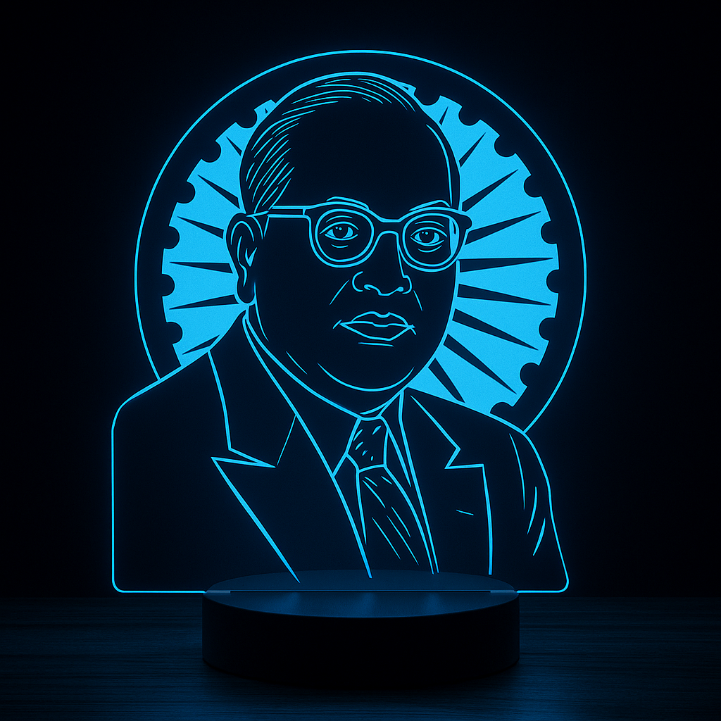 Honor the legacy of Dr. Babasaheb Ambedkar with this stunning 3D LED Illusion Lamp. Crafted with precision on 4mm super glossy acrylic, this design celebrates Babasaheb’s iconic posture and leadership. The multicolor LED base illuminates the laser-cut artwork, creating a striking visual for any space.